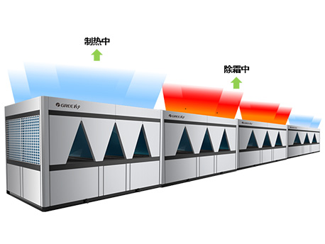 多模塊組合時(shí),自動(dòng)分配除霜模塊數(shù)量,避免各模塊同時(shí)進(jìn)入結(jié)霜,并執(zhí)行熱結(jié)霜順序,不影響舒適性,同時(shí)提高除霜效率。