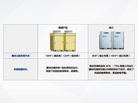 空調在40%~75%負荷運行時,耗電量[敏感詞],GMV5能智能分配各模塊輸出能力,運行負荷超過75%時,自動增加一臺模塊運行;負荷低于40%時自動關閉一臺模塊,有效延長機組壽命,時刻保持低耗電運行。